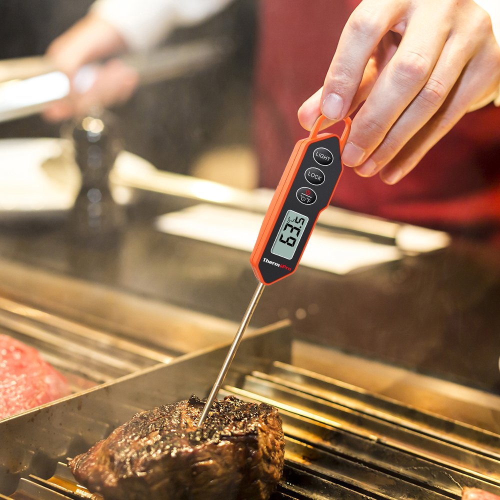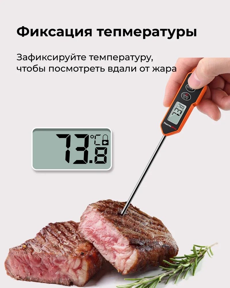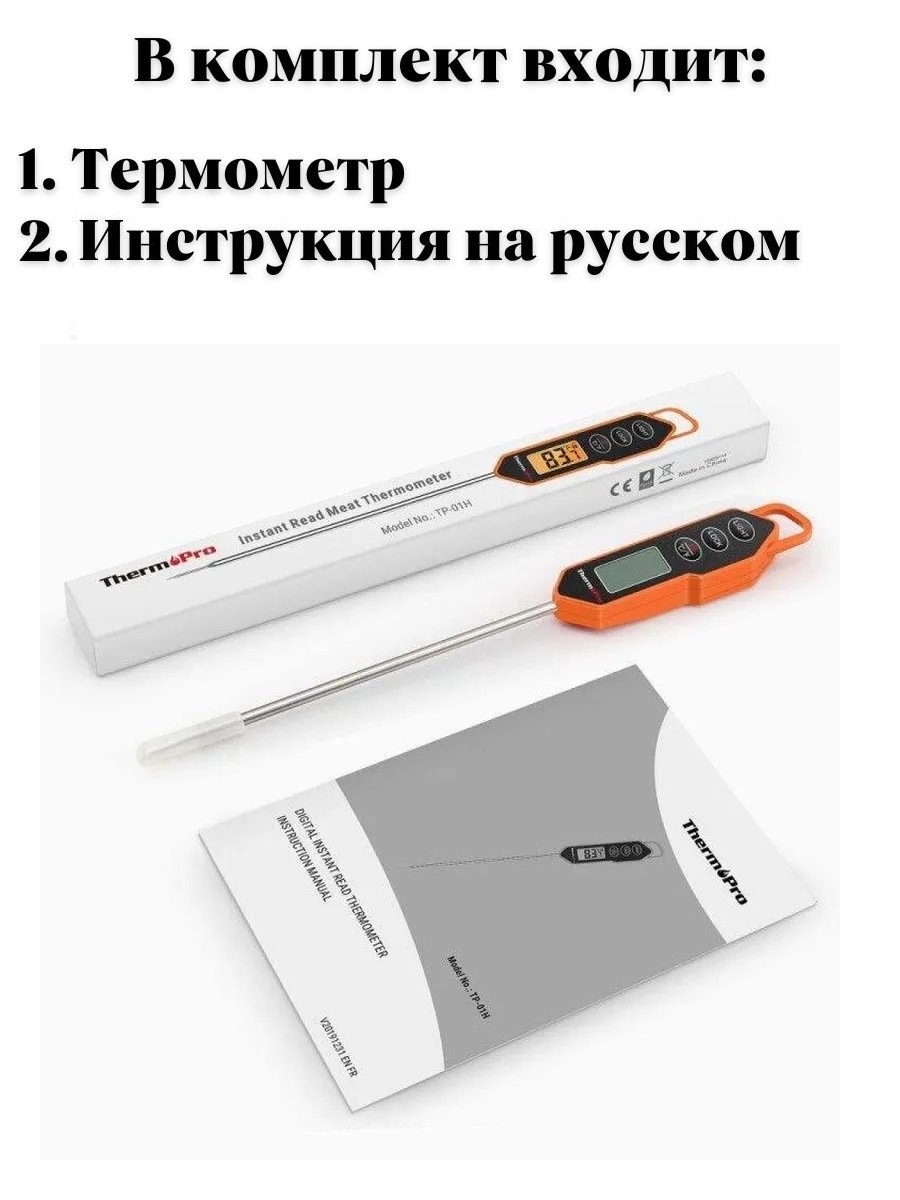 Кухонный термометр ThermoPro TP-01H — Ваш шеф-повар для идеальной прожарки! Забудьте о пережаренном стейке и недопеченной курице! Этот профессиональный термометр станет вашим надежным помощником на кухне, превращая каждое блюдо в кулинарный шедевр. Теперь вы сможете точно контролировать температуру мяса, кондитерских кремов и соусов с точностью до полградуса.
