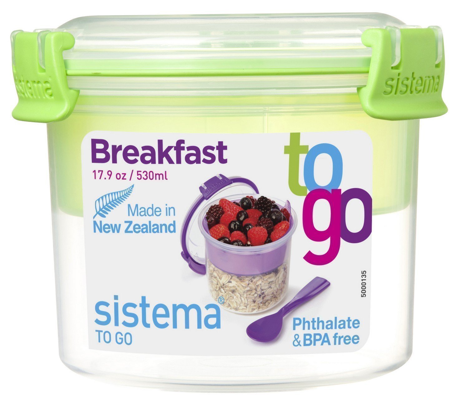 Контейнер круглый зеленый двухуровневый с ложкой 530 мл To Go Sistema 21355