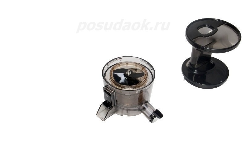 Вертикальная соковыжималка Hurom H-100 белого цвета с технологией бессеточного отжима. В отжимной корзине используется набор из двух решеток, вставляющихся друг в друга. Форма отверстия для прохождения сока представляет собой вытянутые по вертикали арки. Благодаря такой форме, в сок попадает минимальной количество жмыха, а мойка аппарата после использования занимает меньше минуты и в большинстве случаев не требует применения щеток для чистки.