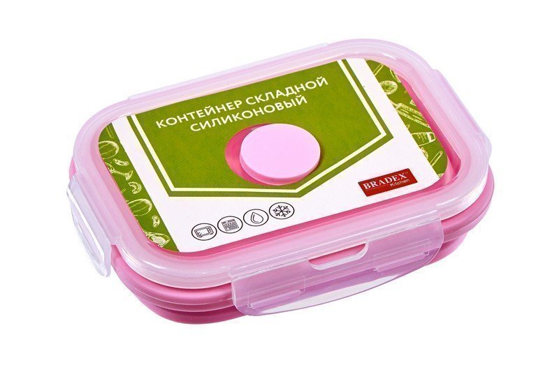 Контейнер складной силиконовый 13х10 см 350 мл, розовый TK 0481