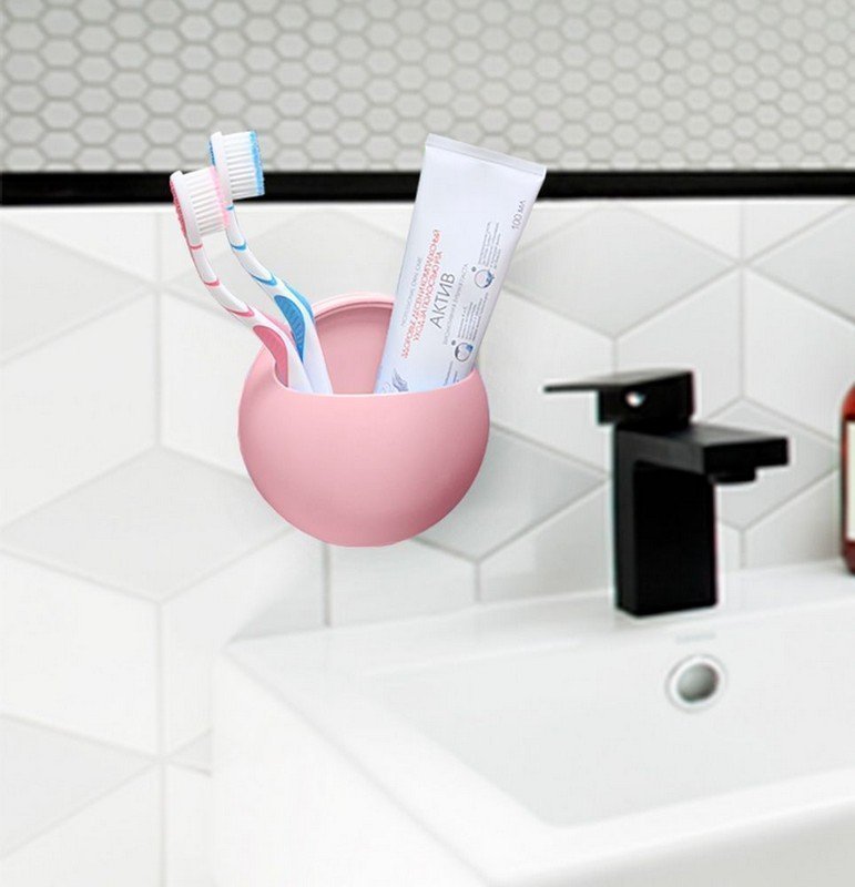 Универсальный настенный держатель из полипропилена позволит аккуратно разместить мелкие хозяйственные принадлежности: косметические средства, зубные щётки, пасту и др. Современный дизайн держателя дополнит интерьер вашей ванной и кухни. Присоски обеспечат надёжное крепление к поверхности, не повреждая её. Преимущества: