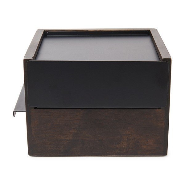 Компактная версия популярной шкатулки для украшений Stowit. Два больших отделения для хранения крупных предметов — колец, браслетов, часов, и один небольшой "потайной" ящичек для запонок, серёжек или цепочек. Благородное сочетание натурального тёмного дерева и металла с чёрным матовым покрытием делает шкатулку отличным для мужчины.