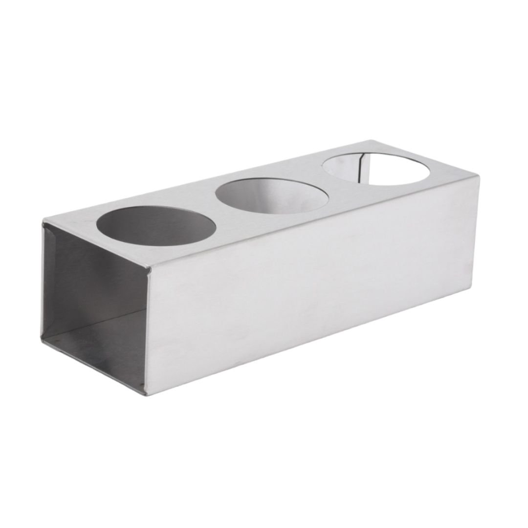 Настольный держатель для соусников и специй выполнен из прочной нержавеющей стали.